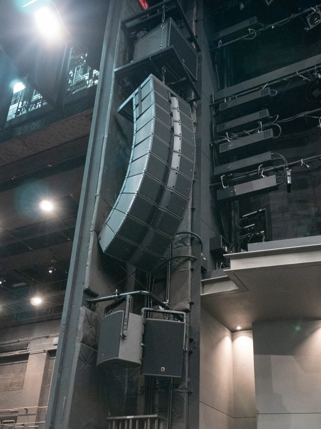 押谷氏「以前はポイントソースのスピーカーを使用していたため、客席の中央でしか音を決めることができませんでした。今回の更新でラインアレイに切り替えたことで、指向性や音の分布が格段に向上し、オペレーターがどの位置にいても適切な音を作ることが可能になりました。ラインアレイはカバーエリアをコントロールできるため、ハウリングマージンも大きくなり、お客様が作品に没頭しやすい環境を整えることができたと感じています。」