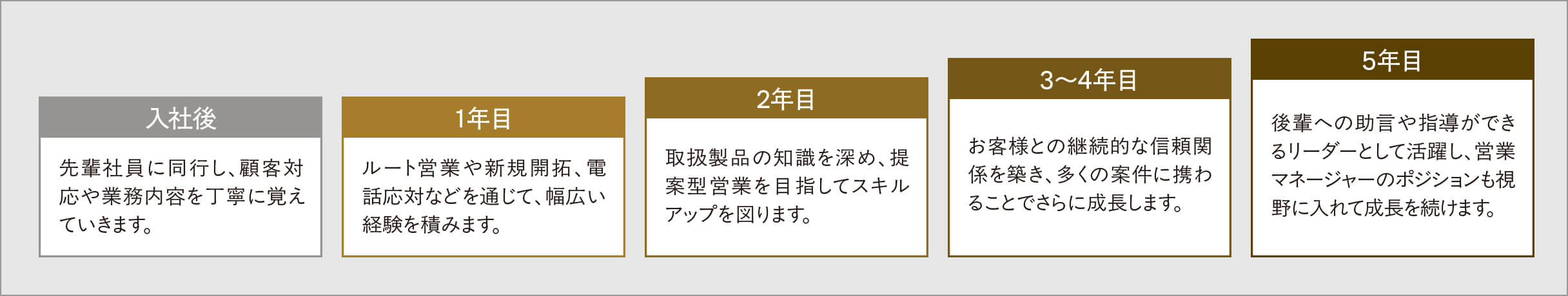 営業の枠にとらわれず、他の業務にも挑戦しながら幅広い経験を積んでいきたいと思っています。そして将来的には、日本国内にとどまらない仕事にも挑戦していきたいです。