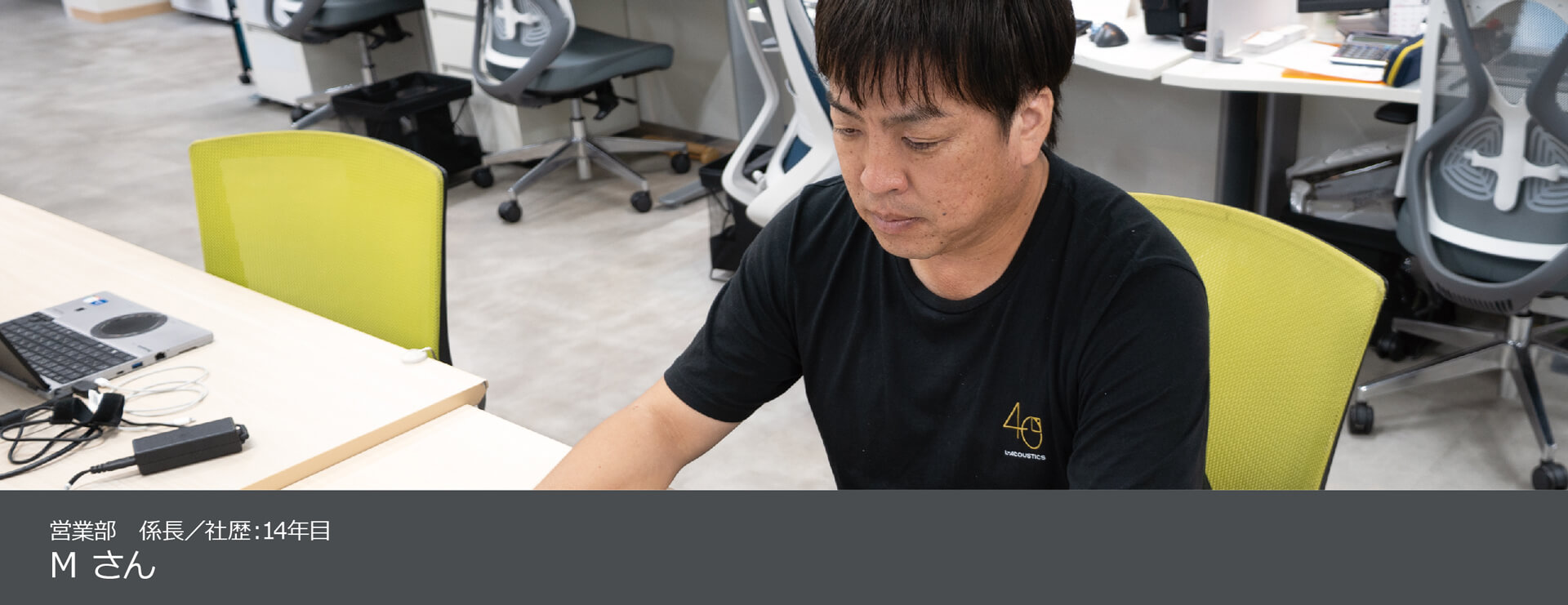 世界中からトップエンドの業務用音響製品を輸入し、お客様にご紹介しています。 システムの構築から運用サポートまで幅広く対応し、単なるセールスではなく、エンジニアとしてお客様の立場に立って考えることで、継続的な信頼関係を築いていきます。 お客様のパートナーとして同じ目線で向き合いながら、夢の実現に一緒にチャレンジしていく――そんな仕事です。