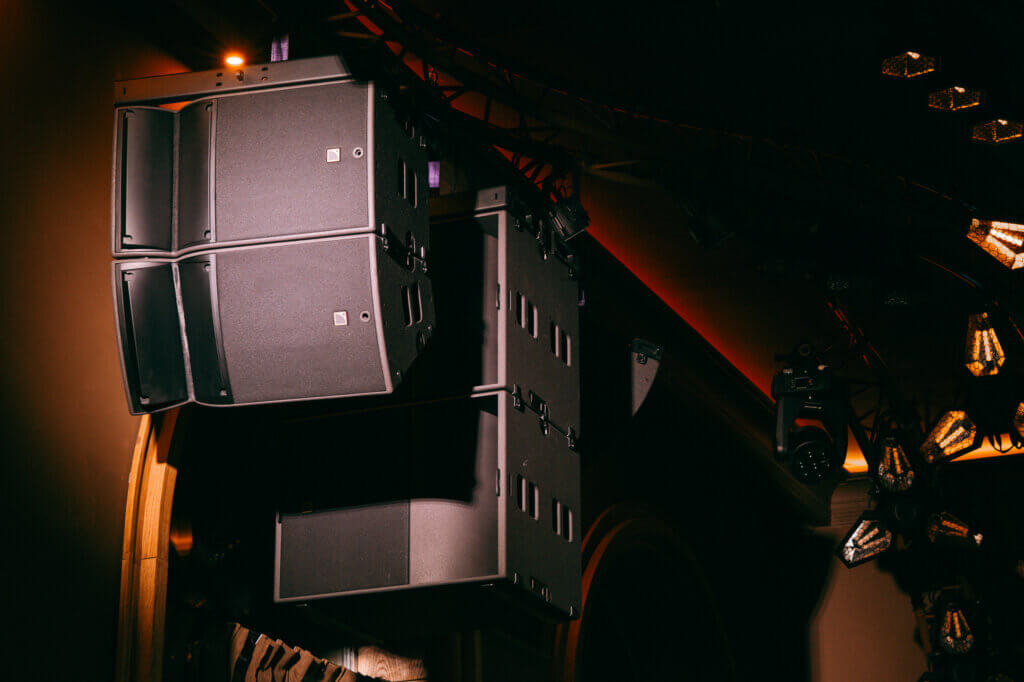 「クラブ」プリセットでは、システム全体が高音量で動作します。高SPLでは自然に低域が強調されるため、追加の処理は不要です。ディレイゾーンの音量をやや下げ、上階の音量を大きく設定することで、ダンスフロアのエネルギーが会場全体に波及します。L-Acousticsシステム特有の温かみのあるサウンドを保ちつつ、細部まで聴き取れる調整が施されています。