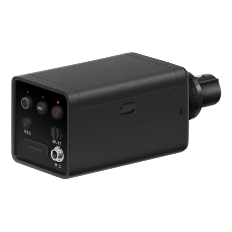 Evolution Wireless Digital 用 の 48 V ファンタム電源、 microSD カードスロット、3.5 mm ラべリアマイクロホン入力を搭載するデジタル UHF XLR プラグオントランスミッター。