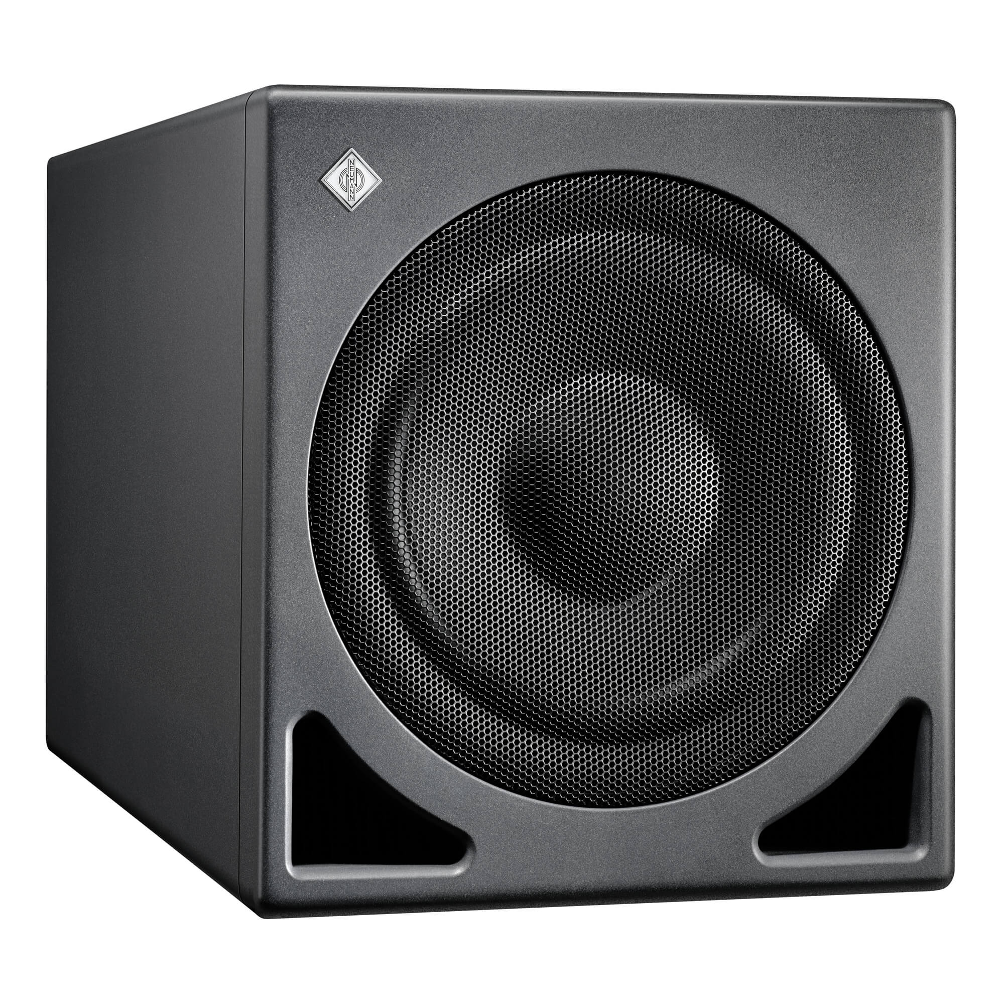 サブウーファーは通常床に設置されるため、頑丈なグリルがドライバーを偶発的な損傷から保護します。堅牢なキャビネットは、非常に効率的なバスレフ型システムを特徴とし、ポートノイズが聴き取れない最も厳密な低音再生のために慎重に設計およびチューニングされています。