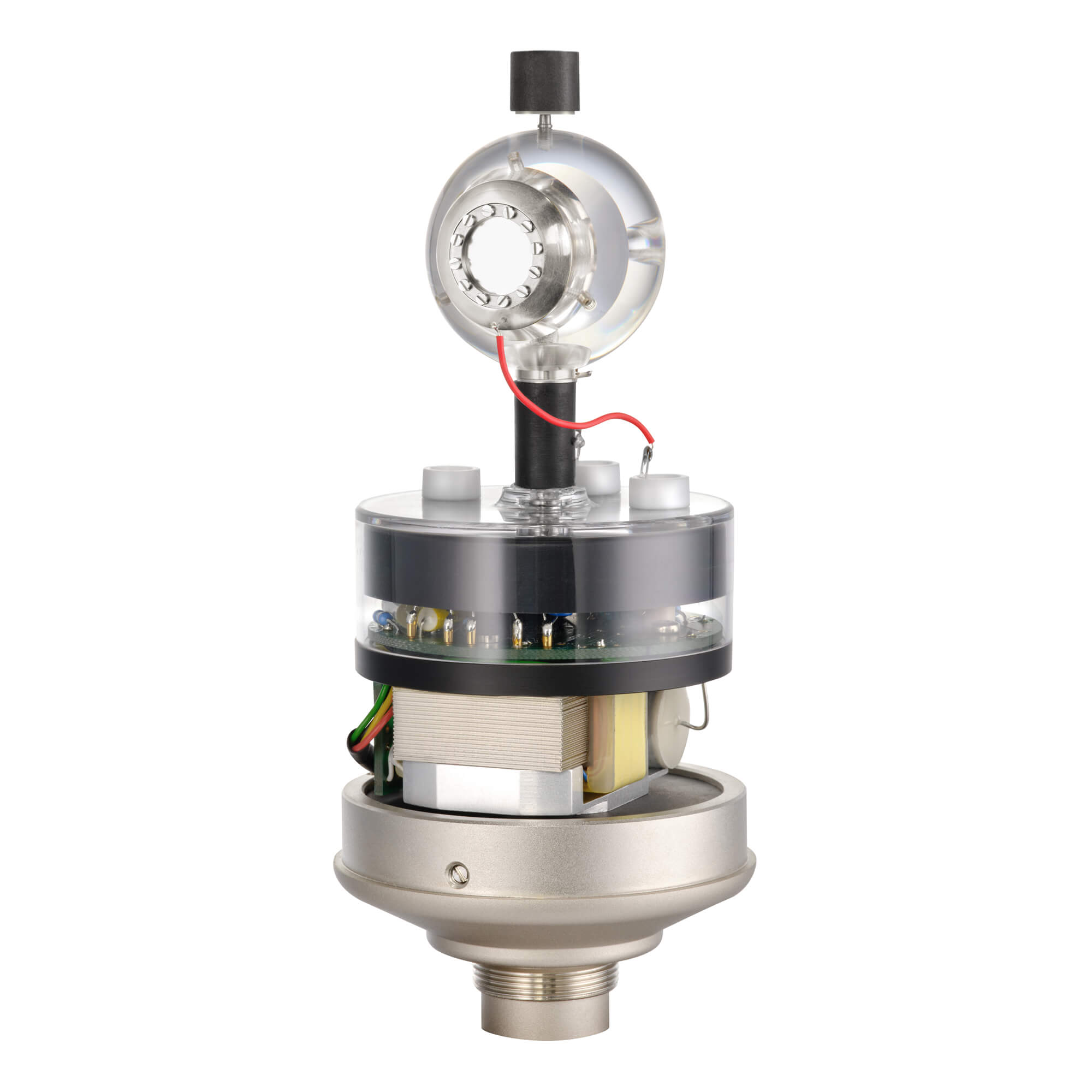 オリジナル M 50 のコンセプトを踏襲した M 50 Vは、基本コンセプトは当時のままで、小口径ダイアフラムを 40 mm アクリル球内にフラッシュマウントする構造を採用しています。これにより、拡散音場で均一なレスポンスを示すとともに、高域に向かって指向性が徐々に増す特性を実現します。
